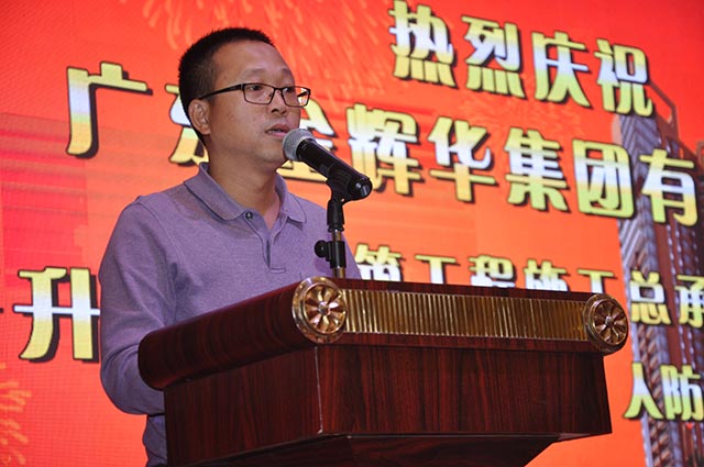 2014年11月22日,廣東金輝華集團(tuán)有限公司召開我司晉升房屋建筑工程施工總承包特級和建筑行業(yè)(建筑工程、人防工程)甲級資質(zhì)的慶祝會(huì)。為了特級,我們一起奮戰(zhàn)了六年,六年的經(jīng)歷歷歷在目!六年的艱辛回味甘甜!六年的耕種全面豐收!感謝各界部門領(lǐng)導(dǎo)的鼎力相助和金輝華全體員工的不懈努力,祝愿金輝華的明天更加輝煌。 集團(tuán)總裁李甫先生作晚會(huì)開幕詞集團(tuán)董事局主席周珉興先生作重要講話集團(tuán)董事局主席周珉興先生帶領(lǐng)各集