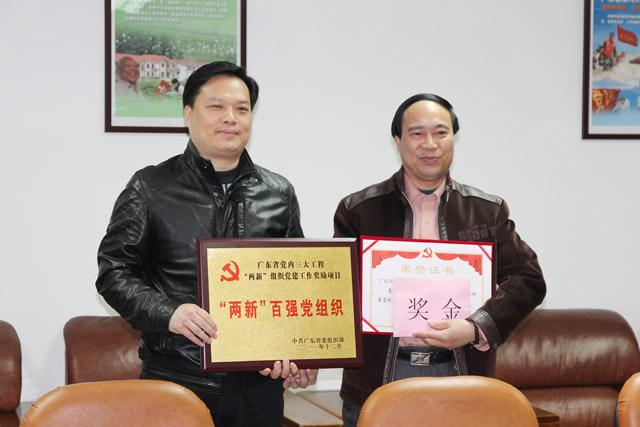 2012年3月12日下午,開平市常委、組織部部長葉銳箭,市政協副主席、長沙黨工委書記林國寧,組織部副部長譚雄輝等領導到我集團公司調研非公有制經濟組織黨組織建設情況,并向我集團黨委頒發廣東省“‘兩新’百強”黨組織牌匾。我集團自2009年12月成立黨委以來,認真貫徹“四好”標準,即“黨建工作好、工作業績好、群眾反映好、社會形象好”,以創先爭優活動為抓手,切實加強黨員隊伍建設,發揮黨員先鋒模范作用,圍繞