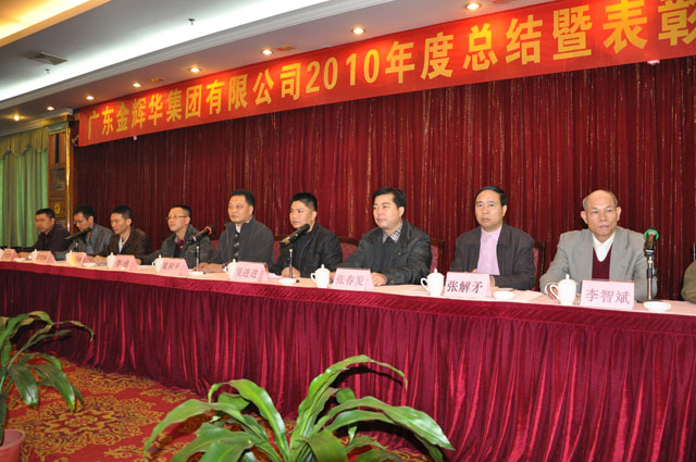 虎躍前程去,兔攜好運來。告別成績斐然的2010年,廣東金輝華集團有限公司迎來了充滿機遇的2011年。2011年1月29日下午,我集團公司在花園酒店宴會廳召開2010年度總結暨表彰大會,開平市常務副市長梁和平、開平市住房和城鄉建設局局長吳進進、開平市建設商會秘書長李智斌等上級領導以及李甫董事長、張國球總裁等集團公司領導參加了會議。2010年,是金輝華集團發展不平凡的一年,在市委、市政府的大力支持以及