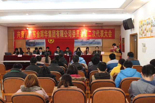 ----記廣東金輝華集團有限公司團委會圓滿完成換屆選舉工作2013年12月20日下午15時,隨著國際歌的歌聲響起,共青團廣東金輝華集團有限公司團委會第二次代表大會正式開幕。開平市團市委團務部辦公室主任譚煥燮、金輝華集團黨委書記張解矛、金輝華集團工會主席陳維民等領導和來自廣東金輝華集團有限公司各分公司的43名團員青年代表共同見證和參與了此次會議。本次大會選舉產生了我司第二屆團委領導班子。 會議主要