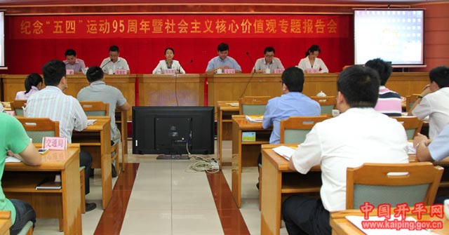 4月30日下午,開平市召開紀念五四運動95周年暨社會主義核心價值觀專題報告會,加強社會主義核心價值觀教育,激發全市廣大團員青年繼承弘揚“五四”精神。市委常委、市委統戰部部長顏海娜出席會議并為獲獎單位和個人頒獎。 會議現場會議對榮獲“2013...
