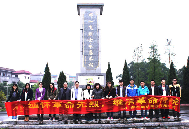 --記我司青年團(tuán)員祭奠烈士紀(jì)念碑,緬懷先烈遺志、決心爭創(chuàng)佳績,踐行中國夢的活動 2013年4月12日,開平市鄧一飛烈士墓前,青松聳立,菊花淡淡,烈士紀(jì)念碑益發(fā)挺拔,一群青年手捧鮮花,一字兒排開,在代表獻(xiàn)上鮮花后,集體三鞠躬,并排著長隊,繞紀(jì)念碑一周,悼念革命烈士,向革命先烈致敬。他們就是廣東金輝華集團(tuán)有限公司的青年團(tuán)員們!為紀(jì)念 “五四”活動,廣東金輝華集團(tuán)有限公司團(tuán)委響應(yīng)團(tuán)市委的號召,開展一次祭