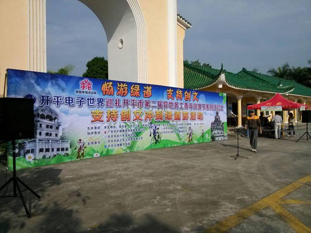 2013年11月17日陽光明媚的早晨,我集團(tuán)公司的三位青年員工聚集在開平立園的門口,等待著參加開平市舉辦的第二屆異地務(wù)工青年玫瑰節(jié)活動“暢游綠道,沖刺創(chuàng)文”。 活動現(xiàn)場團(tuán)市委書記梁文斌講話該次綠道活動從開平立園出發(fā),沿著蜿蜒的市級“綠道”,途經(jīng)塘口自力村再到塘口榮桂坊景區(qū)。一路上,不僅可以瀏覽碉樓村落風(fēng)光,感受濃厚的碉樓文化底蘊;還體驗低碳環(huán)保生活,感受我市創(chuàng)文帶來的新面貌。此外,活動中還包含“尋