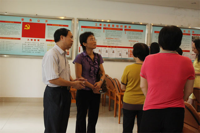 2013年6月14日上午,江門市機(jī)關(guān)工委、發(fā)改局、國稅局、地稅局、經(jīng)信局、財政局、外經(jīng)貿(mào)局、糧食局、供銷社、國家統(tǒng)計局江門大隊、氣象局、注冊會計師協(xié)會、及開平市國稅局、開平市長沙街道辦事處等14政企部門的黨委、黨組領(lǐng)導(dǎo)(以下簡稱14部門黨組領(lǐng)導(dǎo))蒞臨我集團(tuán)參觀交流黨務(wù)工作。14部門黨組領(lǐng)導(dǎo)參觀了我集團(tuán)的黨工青婦活動室、榮譽室、各黨工青婦辦公室與開發(fā)項目:天富豪庭小區(qū)及在建項目:金輝華綜合大廈,并與