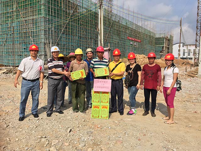 ——記廣東金輝華集團有限公司工會一線“送清涼”活動連日來,天氣進入夏季高溫季節,氣候日益炎熱,為做好防暑降溫工作,保障生產一線工人的健康,推動改善工人生產生活條件,確保工人身體健康平安度夏,工會認真貫徹公司黨委的指示精神,迅速開展夏季“送清涼”活動。公司工會針對各施工現場生產環境實際情況,高度重視,積極籌措資金,制定“送清涼”活動方案,并認真組織實施。6月27日,由工會主席陳維民、工會副主席高迎春