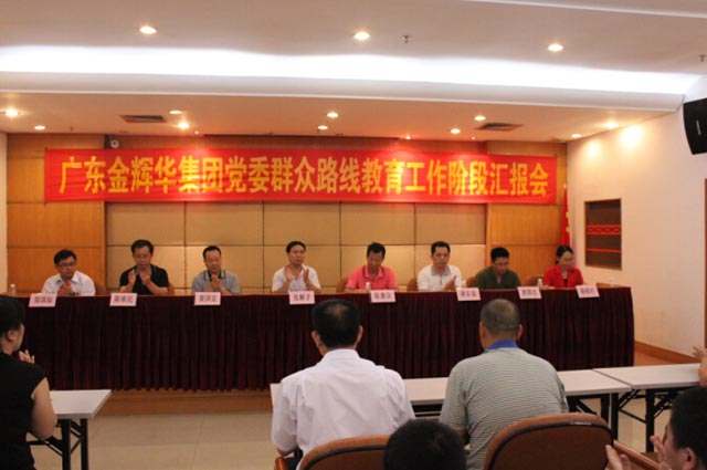2014年10月10下午,廣東金輝華集團黨委在集團公司輝華樓第一會議室召開黨的群眾路線教育實踐活動專題組織生活會。長沙街道辦事處組織辦的同志參加會議。會議邀請了集團工會主席、集團工會副主席,黨委辦公室主任,集團技術中心主任等4名公司代表列席會議。會議由集團黨委書記張解矛主持。會前,集團黨委在深入開展黨的群眾路線教育實踐活動過程中,通過充分的調查、廣泛地聽取基層一線職工的意見等工作,實現真正掌握民情