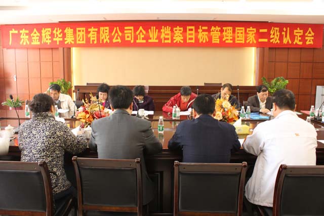 2010年12月24日上午“廣東金輝華集團有限公司企業檔案目標管理國家二級認定會”在集團技術中心會議室舉行,我司最終以88.2分的高分通過了企業檔案目標管理國家二級認定。