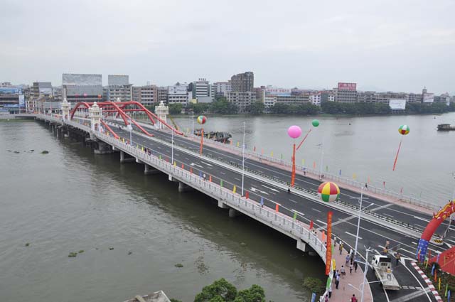2011年6月22日上午,開平市委、市政府舉辦隆重而簡單的儀式,慶祝潭江大橋落成通車。市領導馮立堅、黃耀雄、吳平超、薛衛東、趙會強、張星杰、謝超武、陳偉成、梁和平,以及我集團公司項目領導小組成員部門單位的領導,參建項目的設計、監理、施工、監測等單位代表共50多人參加了儀式。