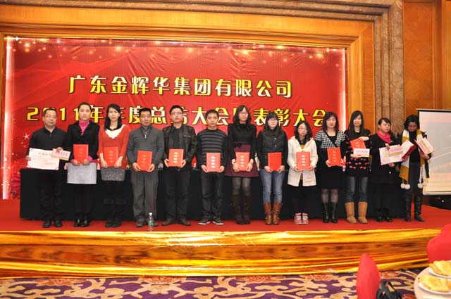 在大會(huì)上,開平市住建局局長(zhǎng)吳進(jìn)進(jìn)作了大會(huì)發(fā)言,充分肯定金輝華公司的成績(jī),勉勵(lì)金輝華公司為重振開平實(shí)現(xiàn)跨越發(fā)展再立新功。總裁李甫作了2011年度工作報(bào)告并提出2012年的展望,董事長(zhǎng)張國(guó)球作了重要講話。最后對(duì)一批為集團(tuán)公司作出突出貢獻(xiàn)的優(yōu)秀員工、優(yōu)秀黨員、團(tuán)員、女職工、優(yōu)秀項(xiàng)目部進(jìn)行了表彰,并對(duì)困難員工進(jìn)行慰問。