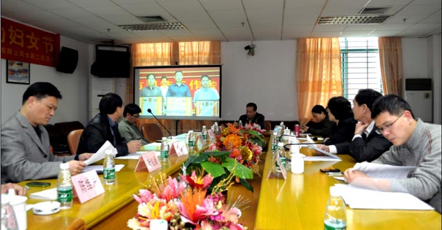 圖為在我集團會議室進行調研時領導們在觀看我集團的匯報視頻。