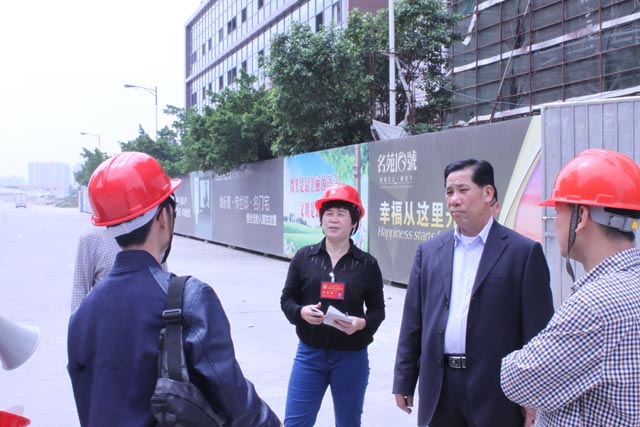 2014年3月25日上午,開平市人大常委會副主任李寶貞同志、長沙街道黨工委副書記黎錦洪、長沙街道黨工委委員陳國強等人大代表、政協(xié)委員、黨代表一行前來我集團開發(fā)、施工的項目:廣東金輝華綜合大廈?名苑10號走訪調(diào)研。