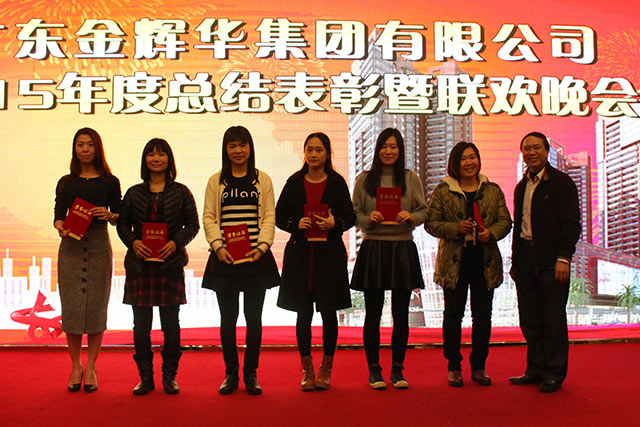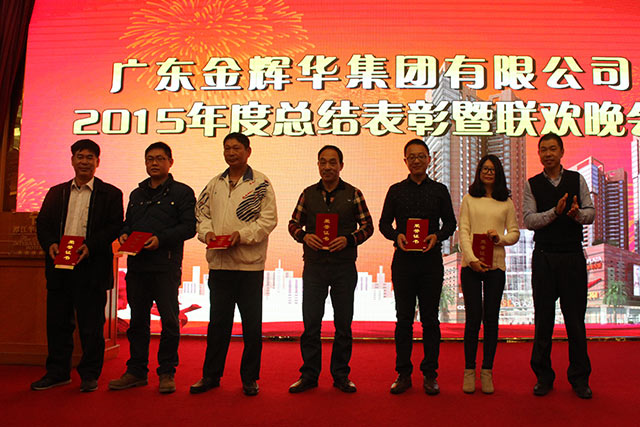 2015年是金輝華集團極為重要的一年,作為廣東省首家擁有房屋建筑工程施工總承包特級資質,以及建筑行業(建筑工程、人防工程)甲級設計資質的民營企業,公司全力推進各項重點工作,全體員工共同努力,在新的領域有所突破,各方面工作穩中有進,在強化企業管理、加速工程建設、重視人才培養等方面做出了大量卓有成效的工作,并取得了可喜的成績。總裁李甫先生作了2015年度工作報告并提出2016年的展望,集團公司黨委書記張解矛先生就過去一年黨工青婦方面的工作進行了總結,董事長張國球先生作了重要講話。最后,對一批在過去一年中涌現出來的突出貢獻員工、優秀員工、優秀黨員、團員、女職工、優秀黨支部進行了表彰和獎勵。