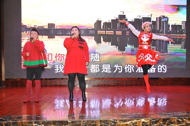 會議中董事局主席周珉興向所有員工發出了新春祝福!主席周珉興、董事長李甫、副總裁張國球、副總裁兼總工程師盧文權、副總裁兼黨委書記張解矛和團委書記譚翠瓊分別宣讀了表彰決定和優秀名單,并分別主持了公司工程優秀創優項目部、“2016省級工法”先進工作者、優秀員工、優秀黨員和優秀團員的表彰環節,領導們為他們頒發了榮譽證書,對他們所作出的成績進行了鼓勵,其中:表彰公司工程優秀創優項目部3個,“2016省級工法”先進工作者3名,優秀員工獎28名,表彰優秀黨員7名,優秀團員5名。最后由工會主席陳維民代表公司向受到表彰的各位同仁表示衷心的祝賀,向奮戰在各崗位的同事致以最真誠的感謝!并勉勵獲獎者們要珍惜榮譽、戒驕戒躁,把獲得的榮譽作為新的起點,在今后的工作中再做貢獻、勇創佳績!我們有理由堅信有這樣一批優秀的員工和團隊,在他們共同努力下,2017年將又是一個收獲的吉祥年。總結大會后,上演了一場歡天喜地的迎春晚會,晚會中,江門市建筑協會會長李耀南上臺作了重要講話,并充分肯定金輝華集團有限公司的成績,勉勵金輝華集團有限公司為重振開平建筑業雄風實現跨越發展再立新功。