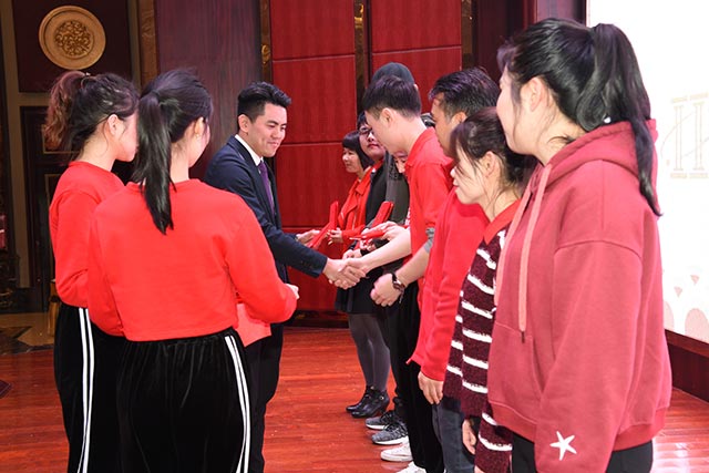 下午4點半,大會在公司領導和全體員工的熱烈掌聲中拉開了帷幕。首先由李甫董事長在會議上做了熱情洋溢的2018年工作總結。其總結說:2018年,金輝華是豐收的一年,我們用汗水鑄就了榮譽!一年里,在董事局、董事會各位領導的正確領導下,在社會各界人士的大力支持下,以及全體同事的共同努力下,我們取得了不平凡的業績!創造了新的紀錄,這是我們團結協作,共同努力的成果!在新年來臨之際,我向所有付出辛勤勞動、努力工作的同事們表示感謝!并祝愿各位在2019年身體健康、家庭幸福、工作順利、萬事如意!