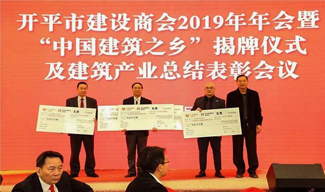 2019年12月27日下午,開平市建設商會2019年年會暨“中國建筑之鄉”揭牌儀式及建筑產業總結表彰大會召開,中國建筑業協會副秘書長景萬,廣東省住房和城鄉建設廳建筑市場監管處處長羅錦榮,廣東省建筑業協會副秘書長謝瑞,江門市住房和城鄉建設局局長林健生,開平市領導龐正華、鄺積康、張星杰、梁民躍、林國寧等出席大會,并為“中國建筑之鄉”揭牌。并對獲得國家優質工程獎、省級優質工程獎的企業進行頒獎。