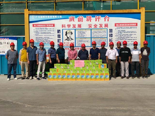 近期連續高溫,熱浪逼人, 7月17日上午,集團公司工會聯合工程管理中心的同志們來到翰林印象花園及歐萊寶環保新材廠房項目施工現場,對在酷暑中堅守崗位、辛勤勞動的一線工人進行了慰問,為他們送去防暑降溫物品。