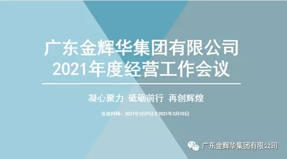 律回春暉漸,萬象始更新。3月9日,以“凝心聚力,砥礪前行,再創輝煌”為主題的廣東金輝華集團有限公司2021年度經營工作會議在風光迤邐的美林湖溫泉大酒店拉開帷幕。會議總結回顧2020年經營工作,分析研判內外部市場形勢,剖析公司業務發展情況,明確2021年經營發展目標,梳理達成策略,指明全新一年的奮斗方向。董事局周主席、董事長李甫、總裁盧文權等集團領導,各區域經營負責人及各中心(室)負責人共25人出席會議。