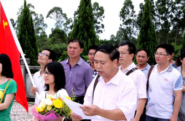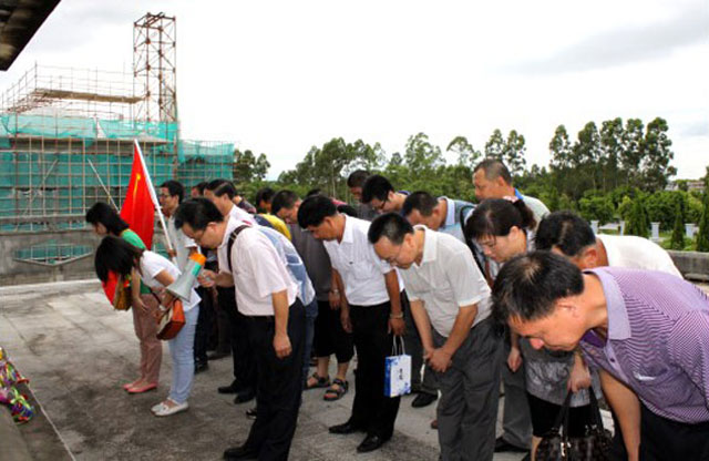 在92年前暴風驟雨的七月,我們偉大的中國共產黨誕生了,在經過了血風腥雨、不屈不撓,前赴后繼后,中國共產黨將處于水深火熱的中國人民帶進了共同致富的社會主義。今天,我們深知勝利來之不易,我們要將烈士的遺志傳承下來,我們要在習近平總書記的帶領下,強黨、強軍、強國,將中國夢一一變成現實!這是金輝華集團黨委書記在周文雍、陳鐵軍烈士紀念碑前代表全體黨員干部講出的心聲!