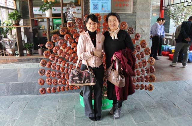 張書記指著正在培育中的靈芝說:“看哪朵更大!”