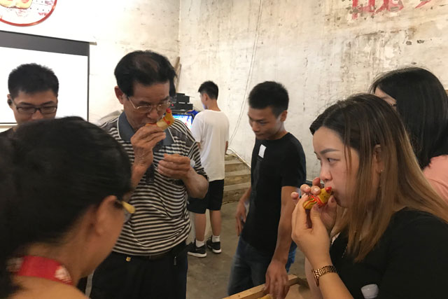 最后全體人員開車前往水口鎮(zhèn)聯(lián)竹村參觀開平非物質(zhì)文化鎮(zhèn)濠泥雞體驗(yàn)展。