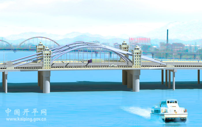 潭江大橋是我市城區(qū)建設(shè)時(shí)間最早的大型橋梁之一,是往來長(zhǎng)沙、新昌最繁忙的交通樞紐,現(xiàn)在的潭江大橋分兩個(gè)時(shí)期建成,前期部分建于1963年,后期部分建于1978年。經(jīng)過40多年的使用,兩部分的橋梁都存在不同程度的損壞,其中前期建的橋梁2004年鑒定為危橋。2006年市委、市政府決定在原址重建潭江大橋。新設(shè)計(jì)的潭江大橋總長(zhǎng)328米,橋?qū)?1.5米,雙向6車道,共15跨,主跨為60米,通航孔凈高不小于5米,通航孔凈寬46米。新橋施工招標(biāo)中標(biāo)價(jià)約為5564萬(wàn)元,計(jì)劃2011年上半年完工。新橋設(shè)計(jì)新穎,充分融合了開平碉樓文化元素,建成后對(duì)解決目前城區(qū)交通擁擠的現(xiàn)狀、對(duì)建設(shè)生態(tài)宜居城市、繁榮城市經(jīng)濟(jì)將產(chǎn)生積極重要作用,是三埠城區(qū)的標(biāo)志性建筑之一。