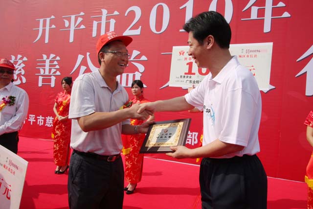 3月3日上午,2010年開平市慈善公益萬人行活動起步儀式在城市北廣場舉行。為支持慈善事業(yè),我集團公司在慈善萬人行活動中向開平市慈善會捐贈了一百萬元,被表彰為第一批慈善事業(yè)突出貢獻的先進單位。